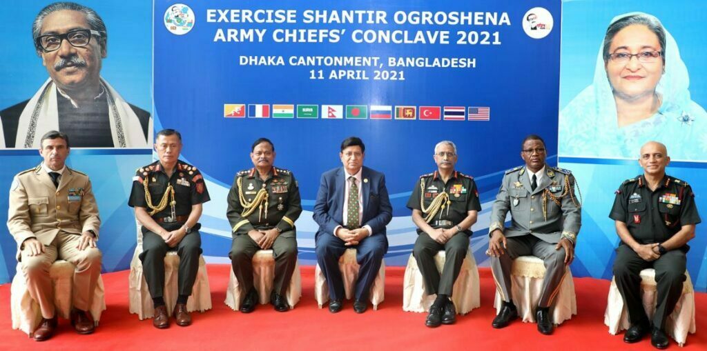জুমবাংলা ডেস্ক: বাংলাদেশ সেনাবাহিনীর আয়োজনে ঢাকা সেনানিবাসস্থ মাল্টিপারপাস কমপ্লেক্সে আজ (১১ এপ্রিল) দেশি ও বিদেশি সামরিক এবং বেসামরিক বিশিষ্ট ব্যক্তিবর্গের অংশগ্রহণে ‘আর্মি চিফ’স কনক্লেভ’ শীর্ষক সেমিনার অনুষ্ঠিত হয়েছে। অনুষ্ঠানে প্রধান অতিথি হিসেবে উপস্থিত ছিলেন পররাষ্ট্রমন্ত্রী ড. একে আব্দুল মোমেন। জাতির পিতা বঙ্গবন্ধু শেখ মুজিবুর রহমানের জন্মশতবার্ষিকী এবং বাংলাদেশের স্বাধীনতার সুবর্ণজয়ন্তীর এই মাহেন্দ্রক্ষণে বিশ্ব শান্তি প্রতিষ্ঠায় জাতির পিতার অবদানকে চিরস্মরণীয় করে রাখার উদ্দেশ্যে আয়োজিত বহুজাতিক সামরিক অনুশীলন ‘শান্তির অগ্রসেনা’ এর অংশ হিসেবে এই সেমিনার অনুষ্ঠিত হয়। সেমিনারে আলোচনার মূল বিষয়বস্তু ছিল ‘ফিউচার ট্রেন্ড অব গ্লোবাল কনফ্লিক্ট: রোল অফ ইউ এন পিস কিপারস্’। আলোচনায় কি-নোট স্পিকার হিসেবে বক্তব্য রাখেন বাংলাদেশ সেনাবাহিনী প্রধান…