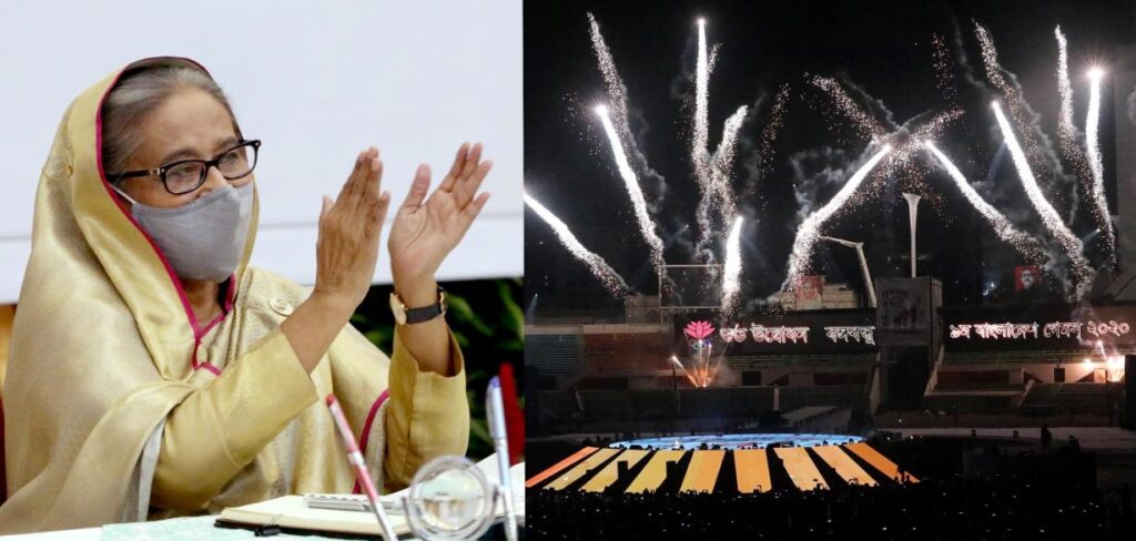 জুমবাংলা ডেস্ক: জাতির পিতা বঙ্গবন্ধু শেখ মুজিবুর রহমানের জন্মশতবার্ষিকী উপলক্ষ্যে ‘বঙ্গবন্ধু ৯ম বাংলাদেশ গেমস্ ২০২০’ প্রতিযোগিতায় সর্বমোট ৩১টি ডিসিপিন এর মধ্যে বাংলাদেশ সেনাবাহিনী ২৩টি ডিসিপিনে অংশগ্রহণ করে। এর মধ্যে বরাবরের ন্যায় বাংলাদেশ সেনাবাহিনী দলীয় খেলাসমূহ যেমন- ফুটবল, ভলিবল, হকি, রাগবি, ওয়াটারপোলো ইত্যাদিতে অপরাজিত চ্যাম্পিয়ন হবার গৌরব অর্জন করে। প্রায় ০৪টি ধাপে ৭৮টি দল নিয়ে অনুষ্ঠিত ফুটবল প্রতিযোগিতার ফাইনালে বাংলাদেশ সেনাবাহিনী সিলেট জেলাকে ২-০ গোলে পরাজিত করে চ্যাম্পিয়ন হয়। ভলিবল প্রতিযোগিতায় সেনাবাহিনী ভলিবল দল ০৩-০১ সেটে বাংলাদেশ বিমানবাহিনীকে পরাজিত করে চ্যাম্পিয়ন হয়। সেনাবাহিনীর অপ্রতিরোধ্য রাগবি দল ৪২-০০ পয়েন্টে ঢাকা জেলাকে পরাজিত করে চ্যাম্পিয়ন হয়। বঙ্গবন্ধু ৯ম বাংলাদেশ গেমস্ ২০২০ এর সাঁতার…