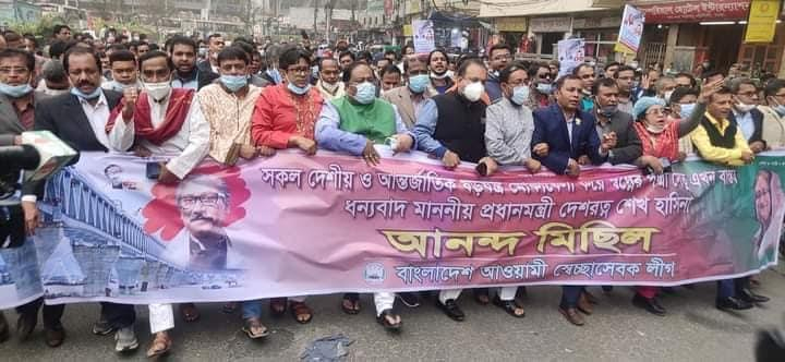 জুমবাংলা ডেস্ক: ‘শেখ হাসিনা’র অবদান পদ্মাসেতু দৃশ্যমান’ এমন স্লোগানেস্লোগানে রাজধানী ঢাকার বিভিন্নস্থানে আনন্দ মিছিল ও মিষ্টি বিতরণ করেছে আওয়ামী লীগ…