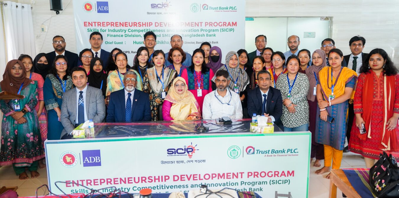 বাংলাদেশ ব্যাংক ও অর্থ মন্ত্রণালয়ের সহযোগিতায় ট্রাস্ট ব্যাংক পিএলসি গত ১১ সেপ্টেম্বর রাঙামাটির সিআইপিডি, টিটিসি রোডে এসআইসিআইপি (SICIP) প্রকল্পের আওতায় এক মাসব্যাপী উদ্যোক্তা উন্নয়ন প্রশিক্ষণ কর্মসূচির উদ্বোধন করেছে। অনুষ্ঠানে প্রধান অতিথি ছিলেন বাংলাদেশ ব্যাংকের নির্বাহী পরিচালক জনাবা হুসনে আরা শিখা এবং বিশেষ অতিথি হিসেবে উপস্থিত ছিলেন বাংলাদেশ ব্যাংকের যুগ্ম পরিচালক ও ডেপুটি প্রোগ্রাম পরিচালক জনাব মোহাম্মদ ওয়াসিম, ট্রাস্ট ব্যাংক পিএলসি-এর সিনিয়র এক্সিকিউটিভ ভাইস প্রেসিডেন্ট ও বিজনেস হেড জনাব মোঃ মাহবুব হোসাইন। অনুষ্ঠানটি সভাপতিত্ব করেন ব্রিগেডিয়ার জেনারেল মোহাম্মদ শামসুজ্জামান (অবঃ), সিনিয়র এক্সিকিউটিভ ভাইস প্রেসিডেন্ট ও প্রিন্সিপ্যাল, ট্রেনিং একাডেমি, ট্রাস্ট ব্যাংক পিএলসি। এ কর্মসূচিতে রাঙামাটির ২৫ জন তরুণ-তরুণী অংশগ্রহণ করছে, যারা হাতে-কলমে…