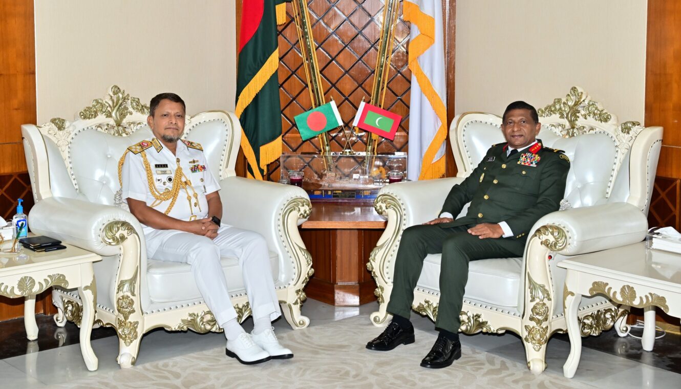 মালদ্বীপের চিফ অফ ডিফেন্স ফোর্স মেজর জেনারেল ইব্রাহিম হিলমির নেতৃত্বে একটি প্রতিনিধি দল আজ (১৪ সেপ্টেম্বর) সেনাসদরে সেনাপ্রধানের সাথে সৌজন্য সাক্ষাৎ করেছেন। সাক্ষাৎকালে পারস্পরিক কুশল বিনিময়ের পাশাপাশি তাঁরা দুই দেশের সামরিক খাতে সহযোগিতা বৃদ্ধির ব্যাপারে আলোচনা করেন। মেজর জেনারেল ইব্রাহিম হিলমি দেশে ও বিদেশে বাংলাদেশ সেনাবাহিনীর পেশাদারিত্ব, বিশেষ করে বর্তমান পরিস্থিতিতে দেশের আইন-শৃঙ্খলা রক্ষায় অবদান নিয়ে ভূয়সী প্রশংসা করেন। এ সময় বাংলাদেশে নিযুক্ত মালদ্বীপের রাষ্ট্রদূত শিউনিন রাশিদ উপস্থিত ছিলেন।-আইএসপিআর https://inews.zoombangla.com/%e0%a6%a8%e0%a7%8c%e0%a6%ac%e0%a6%be%e0%a6%b9%e0%a6%bf%e0%a6%a8%e0%a7%80-%e0%a6%aa%e0%a7%8d%e0%a6%b0%e0%a6%a7%e0%a6%be%e0%a6%a8%e0%a7%87%e0%a6%b0-%e0%a6%b8%e0%a6%99%e0%a7%8d%e0%a6%97%e0%a7%87-3/