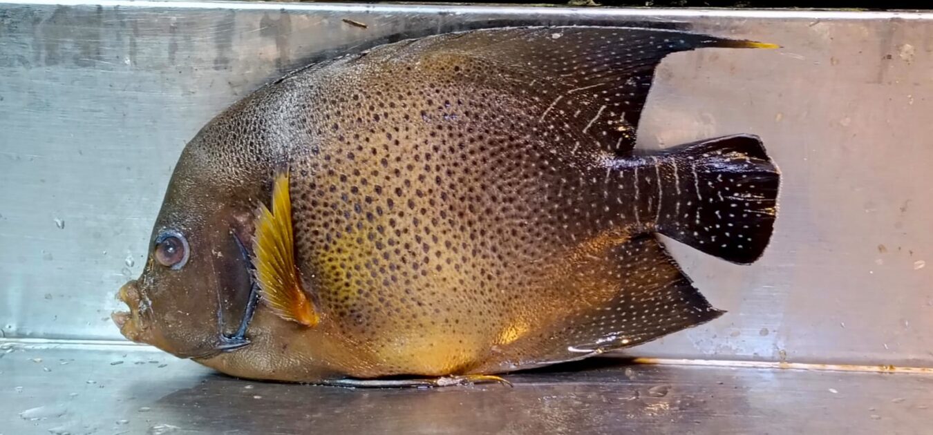 পটুয়াখালী জেলার কুয়াকাটা সংলগ্ন বঙ্গোপসাগরে জেলের জালে ধরা পড়েছে বিরল প্রজাতির সামুদ্রিক মাছ গিনি অ্যাঞ্জেলফিশ বা আফ্রিকান অ্যাঞ্জেলফিশ (Holacanthus africanus)। রঙিন ও দৃষ্টিনন্দন এই মাছ সাধারণত উষ্ণমন্ডলীয় প্রবাল প্রাচীর এলাকায় পাওয়া যায়। গতকাল সোমবার জলিল মাঝির ট্রলারে মাছটি ধরা পড়ে। পরে সোমবার সকালে আলীপুর মৎস্য বন্দরে নিয়ে আসা হলে তা দেখতে ভিড় জমে যায়। অনেকেই জানান, মাছটি দেখতে অবিকল অ্যাকুরিয়ামের মাছের মতো। প্রায় ১৪ ইঞ্চি দৈর্ঘ্যের মাছটির গায়ে গাঢ় সোনালি রঙের ওপর হলুদ অনুভূমিক দাগ এবং মুখে সোনালি-হলুদ ‘মাস্ক’ আকৃতির প্যাটার্ন রয়েছে। স্থানীয় মৎস্য ব্যবসায়ী জামাল বলেন, ‘এমন মাছ জীবনে দেখিনি। বাসায় সবাইকে দেখানোর জন্য ছবি তুলেছি।’ আরেক ব্যবসায়ী সেলিম…