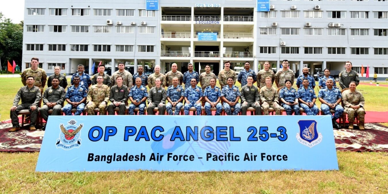 বাংলাদেশ বিমান বাহিনী ও যুক্তরাষ্ট্রের প্যাসিফিক এয়ার ফোর্সের অংশগ্রহণে সাত দিনব্যাপী ‘অপারেশন প্যাসিফিক এঞ্জেল ২৫-৩’ শীর্ষক যৌথ মহড়া আজ (১৪ সেপ্টেম্বর) থেকে শুরু হয়েছে। এ উপলক্ষ্যে ১৩ সেপ্টেম্বর ২০২৫ তারিখে বাংলাদেশ বিমান বাহিনী ঘাঁটি জহুরুল হক-এ একটি উদ্বোধনী অনুষ্ঠানের আয়োজন করা হয়। সশস্ত্র বাহিনী বিভাগের নির্দেশনা ও বাংলাদেশ বিমান বাহিনীর সার্বিক ব্যবস্থাপনায় এই মহড়া অনুষ্ঠিত হচ্ছে। অনুষ্ঠানে বিমান বাহিনী ঘাঁটি জহরুল হক-এ এয়ার অধিনায়ক এয়ার ভাইস মার্শাল হায়দার আব্দুল্লাহ অনুষ্ঠানে প্রধান অতিথি হিসেবে উপস্থিত থেকে মহড়ার আনুষ্ঠানিক উদ্বোধন ঘোষণা করেন। ‘অপারেশন প্যাসিফিক এঞ্জেল ২৫-৩’ মূলত মেডিভ্যাক (উদ্ধার অভিযান) সমন্বয়, বিমান রক্ষণাবেক্ষণ ও বৈমানিক কার্যক্রম, প্যারাসুট ও লিটার রিগিং, রোটারি-উইং হোইস্ট…
