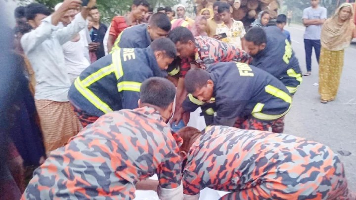 জুমবাংলা ডেস্ক: পঞ্চগড়ের দেবীগঞ্জ উপজেলায় দাঁড়িয়ে থাকা ট্রাক্টরে দ্রুত গতির মোটরসাইকেল ধাক্কা দেওয়া বাবা-ছেলেসহ তিনজন নিহত হয়েছেন। এ সময় মোটরসাইকেলে থাকা অপর আরোহী উপজেলা স্বাস্থ্য কমপ্লেক্সে চিকিৎসাধীন। আজ বুধবার ভোরে উপজেলার দেবীডুবা ইউনিয়নের কালুরহাট কাটনহারি এলাকায় বোদা-দেবীগঞ্জ মহাসড়কে এ দুর্ঘটনা ঘটে। এক মোটরসাইকেলে চারজন ছিল। নিহতেরা হলেন—বোদা পৌরসভার তিতোপাড়া গ্রামের আলমাস আলী (৫৫) ও তাঁর ছেলে তৌহিদুল ইসলাম (৩৫), একই গ্রামের আমীন শেখ (৪৮)। এ সময় নিহত আমিন শেখের ভাই সালেকুল ইসলাম (৩৫) আহত হন। আহত সালেকুল রংপুর মেডিকেল কলেজ হাসপাতালে চিকিৎসাধীন। দেবীগঞ্জ থানার ভারপ্রাপ্ত কর্মকর্তা (ওসি) জামাল হোসেন স্থানীয়দের বরাত দিয়ে বলেন বলেন, বোদা উপজেলা থেকে একই মোটরসাইকেলে চারজন…