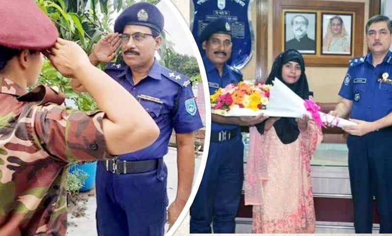 জুমবাংলা ডেস্ক: একে অপরকে স্যালুট দেওয়া সেই বাবা-মেয়েকে সংবর্ধনা দিয়েছেন বাংলাদেশ পুলিশের রংপুর রেঞ্জ ডিআইজি দেবদাস ভট্টাচার্য। আজ বুধবার (১১ আগস্ট) তাঁর নিজ কার্যালয়ে বাবা-মেয়েকে সংবর্ধনা দেন তিনি। সংবর্ধনাপ্রাপ্তরা হলেন রংপুরের গঙ্গাচড়া মডেল থানার এসআই আব্দুস সালাম ও তার মেয়ে সেনাবাহিনীর ক্যাপ্টেন ডা. শাহনাজ পারভীন। বর্তমানে রংপুরের গঙ্গাচড়া মডেল থানায় কর্মরত এসআই আব্দুস সালাম নিজে দেশের কাজে নিয়োজিত থেকে তার মেয়েকেও দেশের কাজে আত্মনিয়োগের জন্য যোগ্য করে গড়ে তুলেছেন। তার মেয়ে ডা. শাহনাজ পারভিন বাংলাদেশ সেনাবাহিনীর ক্যাপ্টেন। দেশসেবায় নিয়োজিত গর্বিত বাবা ও মেয়েকে সংবর্ধনাকালে ক্রেস্ট, ফুলেল শুভেচ্ছা ও অন্যান্য উপহারসামগ্রী দেওয়া হয়। এ সময় অতিরিক্ত ডিআইজি, এসপিসহ উচ্চপদস্থ পুলিশ কর্মকর্তাবৃন্দ…