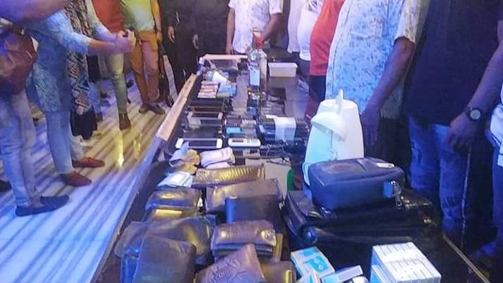 জুমবাংলা ডেস্ক: রাজধানীর উত্তরায় শ্রমিক লীগের ঢাকা মহানগর উত্তরের সহসভাপতি মাজেদ খানের মালিকানাধীন ‘রিভার ওয়েভ’ হোটেলে অভিযান চালিয়েছে র্যাপিড অ্যাকশন ব্যাটালিয়ন (র্যাব)। রবিবার রাতের ওই অভিযানে নগদ টাকা, মাদক এবং ক্যাসিনো সরঞ্জামসহ ৩১ নারী-পুরুষকে আটক করা হয়েছে। র্যাব জানিয়েছে, উত্তরার ১০নং সেক্টর রানাভোলা এভিনিউ সড়কের ২২১ নং হাউসের, ২৩/২৪ নং রোডসংলগ্ন ‘রিভার ওয়েভ’ হোটেল অ্যান্ড রেস্টুরেন্টে রবিবার গভীর রাত পর্যন্ত অভিযান চালানো হয়। এ সময় নগদ টাকা, মাদক এবং ক্যাসিনো সরঞ্জামসহ ৩১ নারী-পুরুষকে আটক করা হয়েছে। আটকদের মধ্যে পাঁচজন তরুণী এবং পুরুষ ২৬ জন রয়েছে। এর মধ্যে বিদেশি নাগরিকও রয়েছে বলে একটি সূত্র গণমাধ্যমকে নিশ্চিত করেছে।