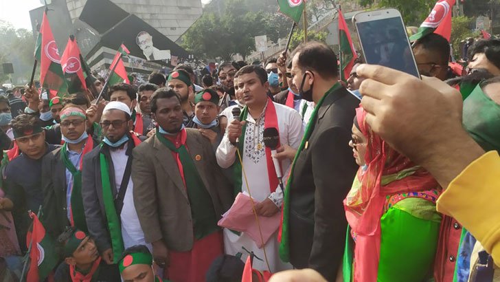 জুমবাংলা ডেস্ক: সরকারি চাকরির ক্ষেত্রে সব পদে মুক্তিযোদ্ধা কোটা পুনর্বহাল করাসহ সাত দফা দাবিতে শাহবাগ মোড় অবরোধ করেছেন চাকরিপ্রার্থীরা। সোমবার দুপুরে প্রায় এক ঘণ্টা শাহবাগ মোড়ে অবস্থান নিয়ে মুক্তিযোদ্ধা সংসদ সন্তান কমান্ডের নেতাকর্মীরা এ অবরোধ করেন। সোমবার সকাল ১০টায় জাতীয় জাদুঘরের সামনে মানববন্ধন করলেও দুপুর ১২টার দিকে বাংলাদেশ মুক্তিযোদ্ধা সংসদ ঢাকা কমান্ড কাউন্সিলের চেয়ারম্যান মো. সোলায়মান মিয়ার নেতৃত্বে প্রায় ৫ শতাধিক নেতাকর্মী শাহবাগ অবরোধ করেন। পুলিশের বাধার মুখে এক ঘণ্টাব্যাপী চলা তাদের এই অবরোধের কারণে শাহবাগ ও এর আশপাশের তীব্র যানজটের সৃষ্টি হয়। এ সময় তারা ২৩ জানুয়ারি থেকে টানা অবরোধের ঘোষণাও দেন তারা। তাদের সাত দফা দাবির মধ্যে রয়েছে-…