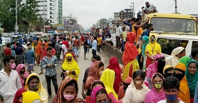 নিজেস্ব প্রতিবেদক, গাজীপুর: গাজীপুর মহানগরীর তারগাছ এলাকায় অনন্ত ক্যাজুয়াল ওয়্যার লিমিটেড নামে একটি কারখানায় শ্রমিক ছাঁটাইয়ের প্রতিবাদে বিক্ষোভ ও মহাসড়ক অবরোধ করেছেন শ্রমিকরা। শনিবার (২ মে) সকালে উত্তেজিত শ্রমিকরা ঢাকা-ময়মনসিংহ মহাসড়কে অবস্থান নিয়ে অবরোধ সৃষ্টি করেন। সম্প্রতি শ্রম মন্ত্রণালয় থেকে শ্রমিক ছাঁটাই বন্ধের নির্দেশ দেয়া হলেও কারখানা কর্তৃপক্ষ সেই নির্দেশনা মানছে না বলে অভিযোগ করেন শ্রমিকরা। শ্রমিকরা জানান, গত ১১ এপ্রিল কারখানার মহাব্যবস্থপক (মানবসম্পদ ও প্রশাসন) মুনির আহমেদ স্বাক্ষরিত একটি নোটিশ দেয়া হয়। সেখানে পুনরায় কারখানা লে-অফ রাখার মেয়াদ বৃদ্ধির বিষয়টি উল্লেখ করা হয়। কারখানায় কর্মরত, কর্মচারী ও শ্রমিকদের জানানো হয়, বাংলাদেশসহ সারাবিশ্বে করোনাভাইরাস মহামারি রুপ নিয়েছে। ফলে আন্তর্জাতিক ক্রেতাগণ…