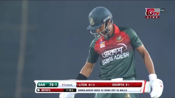স্পোর্টস ডেস্ক : জিম্বাবুয়ের দেওয়া ১২০ রানের লক্ষ্যে খেলতে নেমে শুরুটা দারুণ করেন দুই ওপেনার মোহাম্মদ নাঈম এবং লিটন কুমার দাস। এই রিপোর্ট লেখা পর্যন্ত ১২.৩ বলে বাংলাদেশের সংগ্রহ ৯৪/১! লিটন খেলছেন ৫৪* রানে। এর আগে ম্যাচটিতে টসে হেরে ব্যাটিং করতে নেমে ব্র্যান্ডন টেলরের অনবদ্য হাফ সেঞ্চুরিতে নির্ধারিত ২০ ওভারে ৭ উইকেটে ১১৯ রান সংগ্রহ করে সফরকারী জিম্বাবুয়ে। বাংলাদেশের নিয়ন্ত্রিত বোলিংয়ের মাঝেও দারুণ ব্যাটিং করেন অভিজ্ঞ ব্যাটসম্যান টেলর। ৪৮ বলে এল ছক্কা এবং ৬ চারের সাহায্যে অপরাজিত ৫৯ রানের ইনিংস খেলেন তিনি। এছাড়া ৩৩ বলে ২৯ রান করেন ক্রেইগ আরভিন। বাকি ব্যাটসম্যানদের আর কেউই উল্লেখযোগ্য রান করতে পারেননি। বাংলাদেশের পক্ষে…