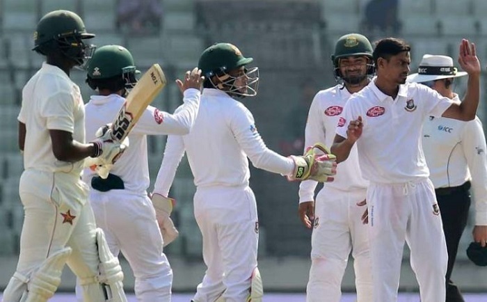 স্পোর্টস ডেস্ক : ম্যাচের বাকি পুরো দুই দিন। বাংলাদেশের জয়ের জন্য প্রয়োজন ২৮৫ রানের মধ্যে ৮ উইকেট। অন্যদিকে জিম্বাবুয়ের প্রাথমিক লক্ষ্য আরও ২৮৬ রান করে স্বাগতিকদের দ্বিতীয়বার ব্যাটিংয়ে আনা। মিরপুরের শেরে বাংলা ক্রিকেট স্টেডিয়ামে আজ (মঙ্গলবার) দিনের খেলা শুরুর আগে এমনটাই ছিলো ম্যাচের সমীকরণ। যেখানে স্বাভাবিকভাবেই চালকের আসনে ছিলো বাংলাদেশ। খেলা শুরুর পরেও আধিপত্য বিস্তার করতে সময় নেননি বাঁহাতি স্পিনার তাইজুল ইসলাম। দিনের ষষ্ঠ এবং নিজের তৃতীয় ওভারে এনে দিয়েছেন প্রথম সাফল্য। ফলে আর ৭টি উইকেট নিলেই ইনিংস ব্যবধানে ম্যাচ জিতে যাবে বাংলাদেশ। এ প্রতিবেদন লেখা পর্যন্ত ১৩ ওভার শেষে জিম্বাবুয়ের সংগ্রহ ৩ উইকেটে ২০ রান। অভিজ্ঞ ব্রেন্ডন টেলর ৩৮…