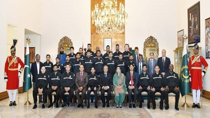 স্পোর্টস ডেস্ক : রাওয়ালপিন্ডিতে শুক্রবার থেকে শুরু হচ্ছে বাংলাদেশ-পাকিস্তান দুই ম্যাচ সিরিজের প্রথম টেস্ট। এর আগে নিজ বাসভবনে বৃহস্পতিবার বিকালে দুদলকে আতিথেয়তা দিলেন পাক প্রেসিডেন্ট ড. আরিফ আলভি। চা পর্ব শেষে প্রেসিডেন্ট ভবনে টাইগার ও মেন ইন গ্রিন খেলোয়াড়রা ফটোসেশন করেন। সেই ছবি সামাজিক যোগাযোগমাধ্যম টুইটারে আপলোড করেছে পাকিস্তান ক্রিকেট বোর্ড (পিসিবি)। দেশটির সংবাদমাধ্যম আগেই জানিয়েছিল, এদিন অনুশীলনের পর দুপুরে পাকিস্তান প্রেসিডেন্টের বাসভবনে যাবেন দুদলের খেলোয়াড়রা। কিন্তু দুপুরে নয়, বিকালে পাক প্রেসিডেন্টের নিমন্ত্রণে সেখানে যান তারা। কড়া নিরাপত্তার মধ্যে হোটেল থেকে ড. আরিফ আলভির বাসভবনে যান বাংলাদেশ-পাকিস্তান ক্রিকেটাররা। প্রেসিডেন্টের এ আতিথেয়তা সঙ্গে নিয়ে বড় ফরম্যাটে ব্যাট-বলের লড়াইয়ে নামবে মুমিনুল হক…