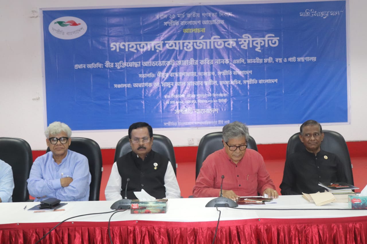 জুমবাংলা ডেস্ক : মুক্তিযুদ্ধে পরাজিত পাকিস্তানিদের সন্তুষ্ট করতে জনবিচ্ছিন্ন বিএনপির নেতারা ভারতবিরোধীতার জিকির তুলছে বলে মন্তব্য করেছেন আওয়ামী লীগের সভাপতিমণ্ডলীর সদস্য এবং বস্ত্র ও পাটমন্ত্রী জাহাঙ্গীর কবির নানক। সোমবার (২৫ মার্চ) রাজধানীর সিরডাপ মিলনায়তনে সম্প্রীতি বাংলাদেশের উদ্যোগে ‘গণহত্যার আন্তর্জাতিক স্বীকৃতি’ শীর্ষক আলোচনা সভায় এসব কথা বলেন তিনি। বিএনপি নেতাদের উদ্দেশে জাহাঙ্গীর কবির নানক বলেন, রিজভী সাহেবের বাবা ছিলেন পাকিস্তান পুলিশে কর্মরত। পাকিস্তানের পক্ষাবলম্বন করে মুক্তিযুদ্ধের বিরুদ্ধে যুদ্ধ করেছেন। আরেকজন মির্জা ফখরুল ইসলাম আলমগীর; যার বাবা চোখা মিয়া মুক্তিযুদ্ধের সময় চোখা রাজাকার হিসাবে স্বীকৃতি পেয়েছিলেন। সেই চোখা রাজাকারের ছেলে মির্জা ফখরুল ইসলাম আলমগীররা তো অবশ্যই পাকিস্তানিদের আইএসআইকে সন্তুষ্ট করার জন্য ভারতবিরোধীতার…
