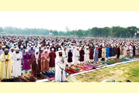 জুমবাংলা ডেস্ক : উপমহাদেশের বৃহত্তম ঈদগাহ, দিনাজপুরের ঐতিহাসিক গোর-এ-শহীদ বড়মাঠে লাখো মুসল্লি একসঙ্গে ঈদুল আজহার নামাজ আদায় করেছেন। ধর্মীয় ভাবগাম্ভীর্য…