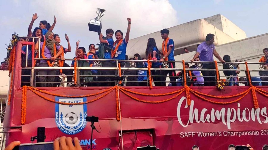 জুমবাংলা ডেস্ক : টানা দ্বিতীয়বারের মতো সাফ শিরোপা জয় করে দেশে ফিরেছে বাংলাদেশ নারী ফুটবল দল। আজ শিরোপাজয়ী মেয়েদের সংবর্ধনা…