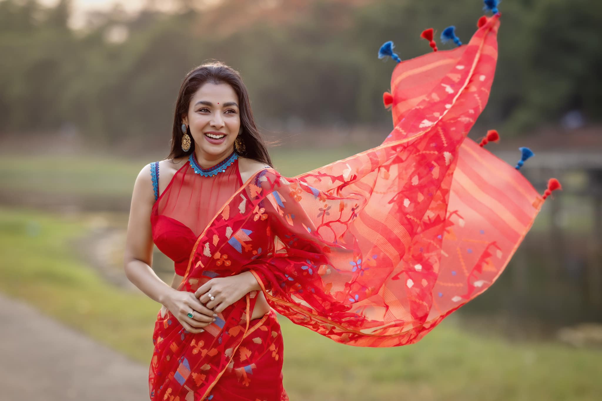 বিনোদন ডেস্ক : দেশের ছোট ও বড় পর্দার জনপ্রিয় অভিনেত্রী রুনা খান। অভিনয়ের স্বীকৃতিস্বরূপ পেয়েছেন জাতীয় চলচ্চিত্র পুরস্কার। সম্প্রতি এই অভিনেত্রী ‘অসময়’ ওয়েব ফিল্মে অভিনয় করে ব্যাপক প্রশংসা কুড়িয়েছেন। এবার লাল জামদানিতে নিজেকে কৃষ্ণচূড়ার রংয়ে রাঙিয়ে এলেন আলোচনায়।