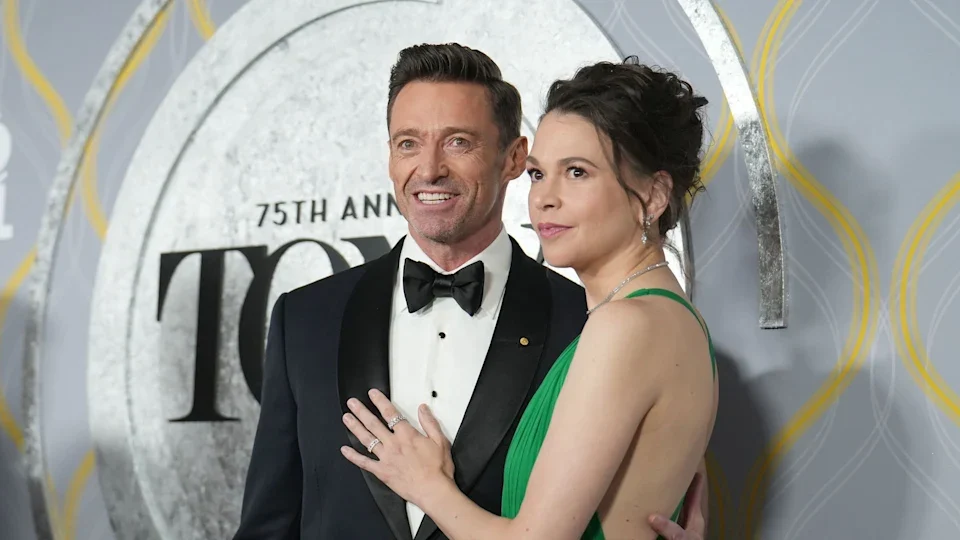 Hugh Jackman, Sutton Foster serve couple goals in matching outfits