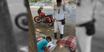ডিউটির মাঝে রাস্তায় ছাত্র পড়াচ্ছেন পুলিশ! প্রশংসার ঝড়