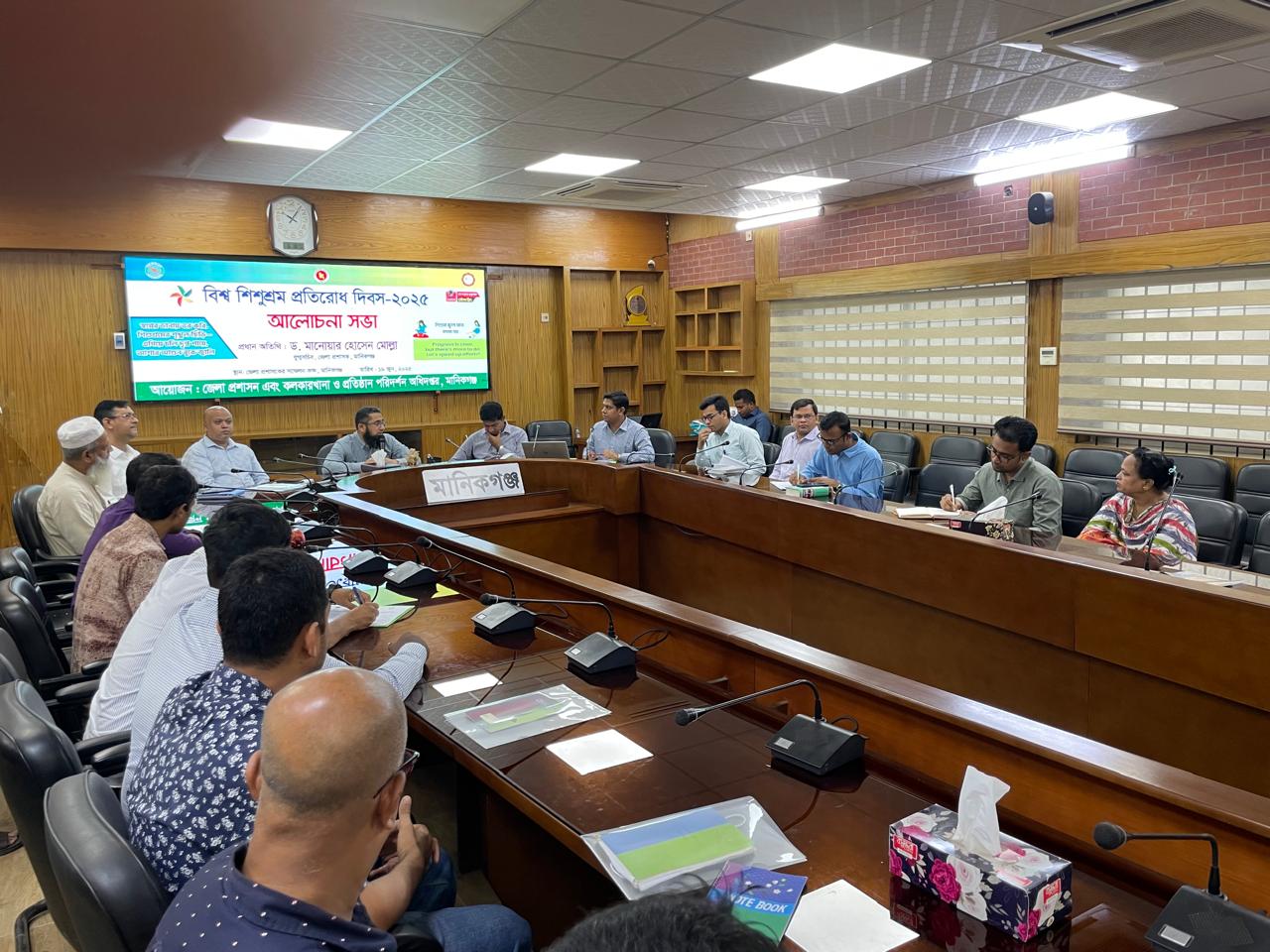 সভায় প্রধান অতিথির বক্তব্যে জেলা প্রশাসক বলেন, “শিশুদের শ্রমে নিয়োজিত করা হলে তাদের শারীরিক ও মানসিক বিকাশ ব্যাহত হয়। ঝুঁকিপূর্ণ কাজে তারা নানা স্বাস্থ্যঝুঁকি ও রোগের শিকার হয়। শিশুশ্রম প্রতিরোধে সমাজের সবাইকে একযোগে কাজ করতে হবে।”
