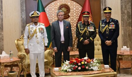 সশস্ত্র বাহিনী দিবস ২০২৫ উপলক্ষে আজ (২১ নভেম্বর) রাষ্ট্রপতি মোঃ সাহাবুদ্দিনেরর সাথে বঙ্গভবনে সেনাবাহিনী প্রধান, নৌ বাহিনী প্রধান ও বিমানবাহিনী…