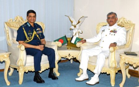 বাংলাদেশ সফররত পাকিস্তান নৌবাহিনী প্রধান এডমিরাল নাভিদ আশরাফ আজ (১১ নভেম্বর) বিমান বাহিনী সদর দপ্তরে বাংলাদেশ বিমান বাহিনী প্রধান এয়ার…