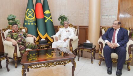 বাংলাদেশ সেনাবাহিনী প্রধান জেনারেল ওয়াকার-উজ-জামানের সঙ্গে সাক্ষাৎ করেছেন ঢাকা সফররত পাকিস্তান নৌবাহিনী প্রধান অ্যাডমিরাল নাভিদ আশরাফ। শনিবার (৮ নভেম্বর) সেনাসদরে…